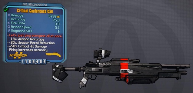 O Conference Call: shotgun lendária dropada por the warrior, não tenho muito a descrever dela, apenas dizer que ela é da hyperion, entâo aí vai a imagem: